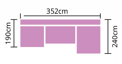 Az Aladin sarokülő méretei lehetővé teszik, hogy különböző méretű nappalikban is tökéletesen elhelyezhető legyen. A kanapé méretei a következők: