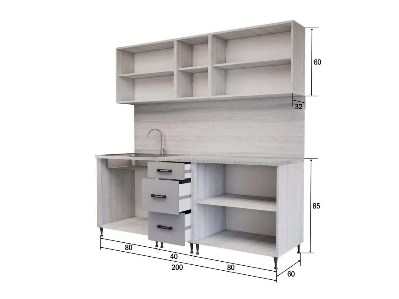80-as felső: 60 cm × 80 cm × 32 cm