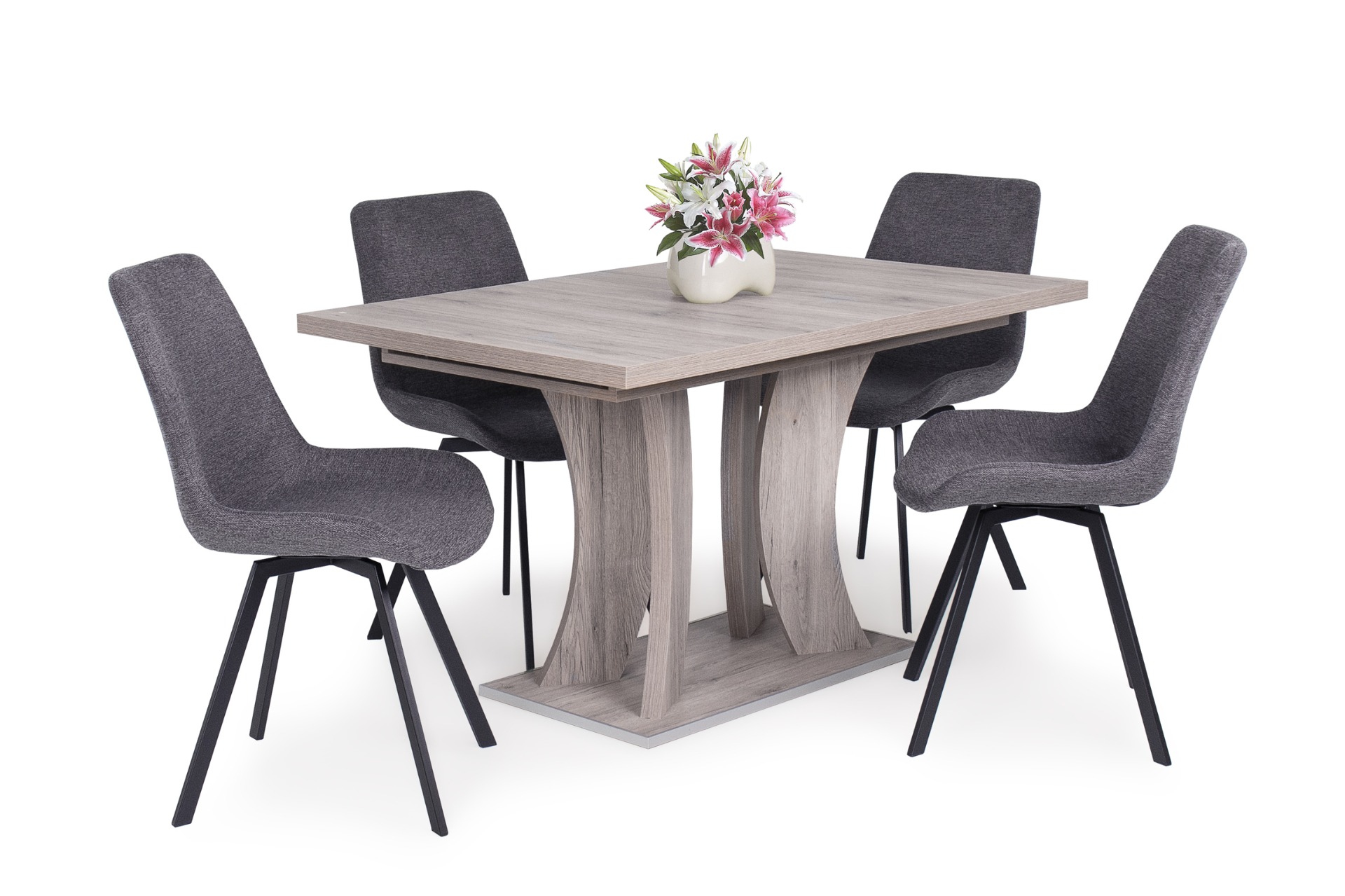 Milla székünk ülőrésze 360 fokban elforgatható. Kellemes tapintású szövet kárpit, fekete porfestett láb jellemzi.