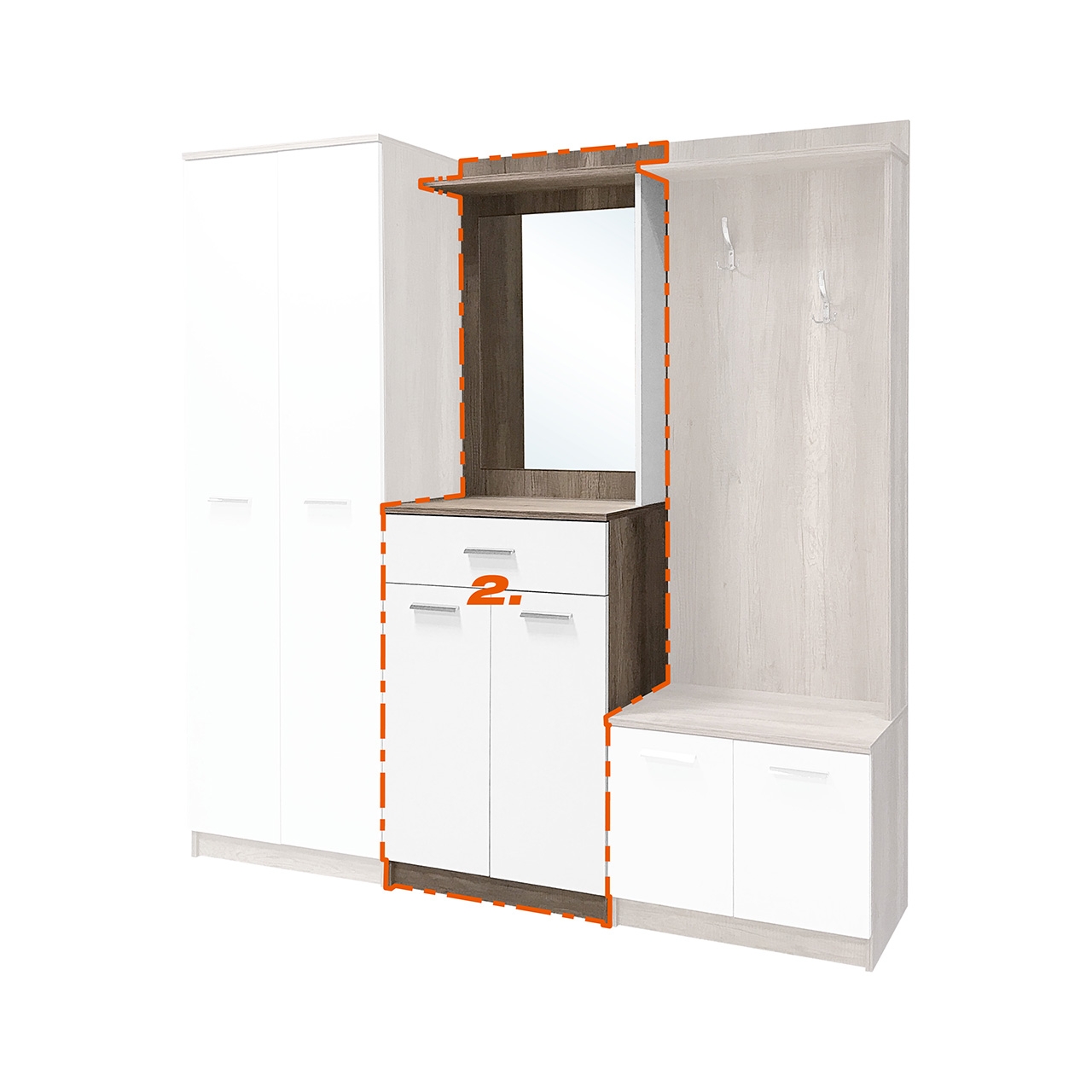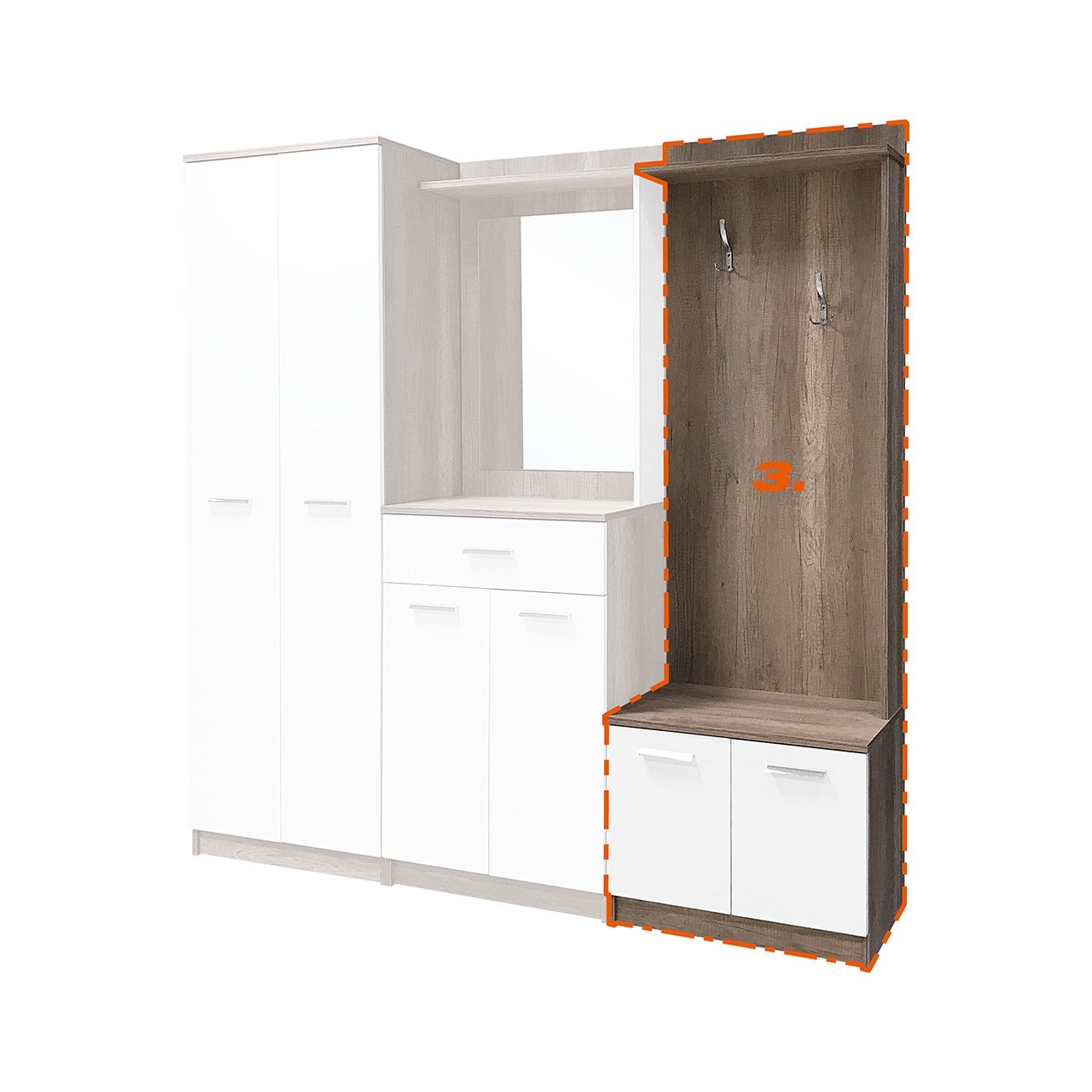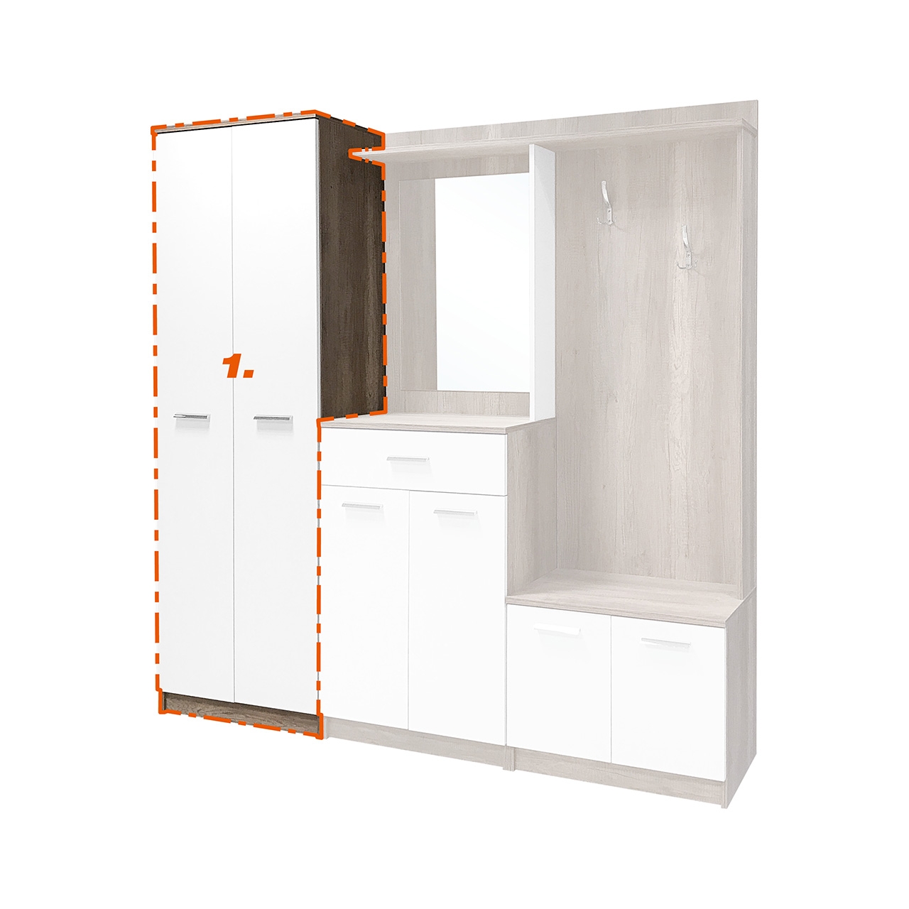 Az 1. elem ajtajai mögött két polc és egy kihúzható vállfatartó található.