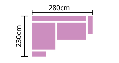 A New York sarokülő különböző méretekkel rendelkezik, így kiválóan illeszkedik különböző méretű nappalikba is. A kanapé méretei a következők:
